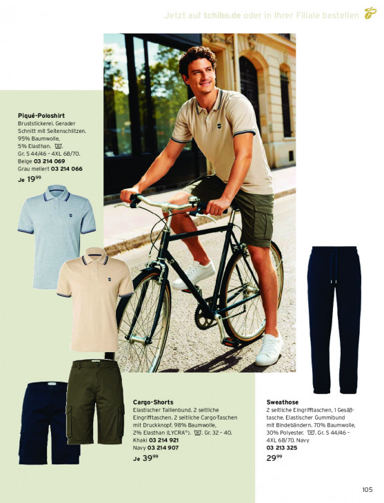Bitte beachten Sie, dass dieser Text automatisch generiert wird und möglicherweise Fehler enthält& a * ve RA \ t WN Piqué-Poloshirt E Bruststickerei. Gerader Schnitt mit Seitenschlitzen. Le 95% Baumwolle, 5% Elasthan. CJ. | Gr S 44/46 - AXL 68/70. Beige 03 214 069 | Grau meliert 03 214 066 } / Je 19% (Sp = er. a CU zj ” À L. 1/1 2 || dl Ji LA N 02? hij 4 À A VA er Cargo-Shorts Sweathose Elastischer Taillenbund. 2 seitliche 2 seitliche Eingrifftaschen, 1 Gesäß- tasche. Elastischer Gummibund Eingrifftaschen. 2 seitliche Cargo-Taschen mit Druckknopf. 98% Baumwolle, mit Bindebändern. 70% Baumwolle, 2% Elasthan (LYCRA®). 18. Gr. 32 - 40. 30% Polyester. WJ. Gr. S 44/46 - Khaki 03 214 921 AXL 68/70. Navy Navy 03 214 907 03 213 325 Je 39% 29% 105