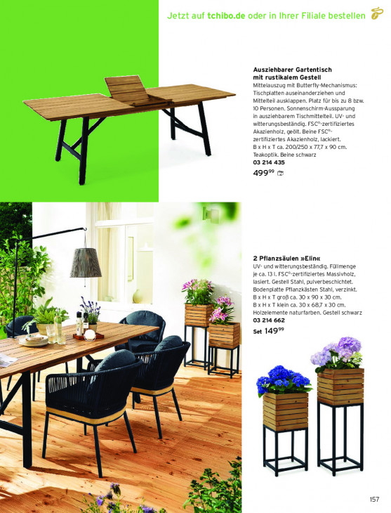 Bitte beachten Sie, dass dieser Text automatisch generiert wird und möglicherweise Fehler enthältAusziehbarer Gartentisch mit rustikalem Gestell Mittelauszug mit Butterfly-Mechanismus: Tischplatten auseinanderziehen und Mittelteil ausklappen. Platz für bis zu 8 bzw. 10 Personen. Sonnenschirm-Aussparung in ausziehbarem Tischmittelteil. UV- und witterungsbeständig. FSC*-zertifiziertes Akazienholz, geölt. Beine FSC*- zertifiziertes Akazienholz, lackiert. BXHXT ca. 200/250 x 77,7x 90 cm. Teakoptik. Beine schwarz 03 214 435 499% & DER En W RN à 2 Pflanzsäulen »Elin« NS Uv- und witterungsbeständig. Füllmenge 3 je ca. 131. FSC*zertifiziertes Massivholz, «| = st lasiert. Gestell Stahl, pulverbeschichtet. Er “ Bodenplatte Pflanzkästen Stahl, verzinkt. hl x Bx Hx T grof ca. 30 x 90 x 30 cm. 5 ij [> U His Bx Hx T klein ca. 30 x 687 x 30 cm. dt 23 5 rs ar Holzelemente naturfarben. Gestell schwarz = se Là nd 03 214 662 X = a Set 149% AE N e jr = | Ef M Tu] A L de = BT mn / à = = PT NN “ N ft RS a sl kan 2 EU Ex à 2 => Sr 157 Ÿ À Re vw EN *