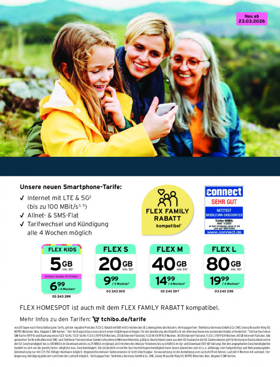 Bitte beachten Sie, dass dieser Text automatisch generiert wird und möglicherweise Fehler enthältu, | Den =. C1 Win, y ee | NA Ÿ Z Unsere neuen Smartphone-Tarife: connect V Internet mit LTE & 56? SEHR GUT (bis zu 100 MBit/s? >) AA FLEX FAMILY NETZTEST v Allnet- & SMS-Flat | [MOBILFUNK-DISCOUNTER] RABATT The MOBIL v Tarifwechsel und Kündigung en vs kompatibel‘ Inte time zit alle 4 Wochen möglich EK EA FLEX KIDS FLEX S FLEX M FLEX L GB GB GB GB in. 56 2 ini. 567 4 ink.56 8 Dr EREN 99 99 99 99 9 ‘A Wochen 1 Tawochen® 1 TaWochen® Tawochen® 03243305 03 243 297 03243 298 03 243 299 FLEX HOMESPOT ist auch mit dem FLEX FAMILY RABATT kompatibel. Mehr Infos zu den Tarifen: W tchibo.de/tarife 10128 Tagen nach Freischalungdes Tri gillder reglärePreis de FLEX Rabatt enfält mil reichen des. Lebensjahres es Nutzers Vertragspartner: Teleönica Germany GmbH &Ca.OHG, Georg-Brauchle-Ring 50. 180992 München.Max Abgabe 5 SIM-Karte. ‘Der Verlragssclussmussdurch einen Voljährigen erfolge. Für die Genährung desRabaltsit ein Allersnachneisdesnutzenden Kindes erforderlich. Gil ba Kauf ner Si-karte (999€) und Buchung eines FLEXTari.FLEXTr:FLEXS 999 4 Wochen 2068 Interne atrate), FLEXM (1499 €/4 chen, 40GBInlerne-latrae),FLEXL(1999 A Wochen, 80 8 Inlernetlarae). Ale genannten Tri enthalten eine SNS-und Telefonie larate (ohne Sonderrufnummern/Mehnwertienste) gültig in Deutschland sone aus em El-Auslandin di EU. Datenvolumen gilt fü Nutzungin Deutschland und in dere Geschuindigke bis zu 100 MBU/sim Download und bis zu 25 MB im Upload, ab Erreichen des Inklsi-Volumens bis zu 64KBi/s im Up- und Downad (100-8 Taktung).Bei den angegebenen Geschninigkeiten Bande eich um de jeweils techn. mögliche max Geschwindigkeit. Die talschlich ereichle Durchschnisgeschwindigkeit kann davon abweichen und ist u.a.abtängig vom Endgerätetyp und Nelzausbaugebt Datennutzung nur mit LTE/SG-fhiger Hardnare möglich UngenutztesInkusiv-Datenvolumen ist nicht übertragbar. Voraussetzung ist die Anmeldung zum Lastschriftverlahren, Laufzeit 4 Wochen mit automat. Ver Kingerung, Kündigung jderzeitzum Ende derLaufzetmögich. Vertragspartner: Telfönia Germany GmbH &.0.0H6,Georg-Brauchke-Ring 50,80992 München.Mar. Abgabe 5 SN-Karten.