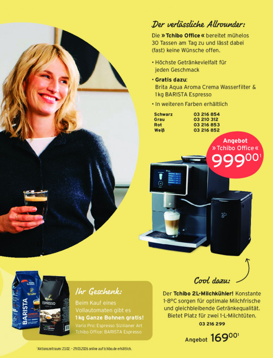 Bitte beachten Sie, dass dieser Text automatisch generiert wird und möglicherweise Fehler enthältLS y Angebot » Tchibo Office« = ZZ À | — 5 — T Á se id à = =! Ks Ihr Geschenk: zl ESPRESSO Beim Kauf eines Vollautomaten gibt es a: ikg Ganze Bohnen gratis! [2 Vario Pro: Espresso Sizilianer Art Tchibo Office: BARISTA Espresso