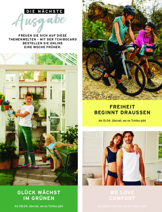 Bitte beachten Sie, dass dieser Text automatisch generiert wird und möglicherweise Fehler enthältED il 6, Fi & FREUEN SIE SICH AUF DIESE ej THEMENWELTEN - MIT DER TCHIBOCARD zp BESTELLEN SIE ONLINE a EINE WOCHE FRÜHER. SP} TD N N FE | ® Be Se 5 CT | ee PAR, en } FREIHEIT BEGINNT DRAUSSEN [4 Ab 15.04. überall, wo es Tchibo gibt Ik 22 N A RE "2 = ä | eu u nn 2 =