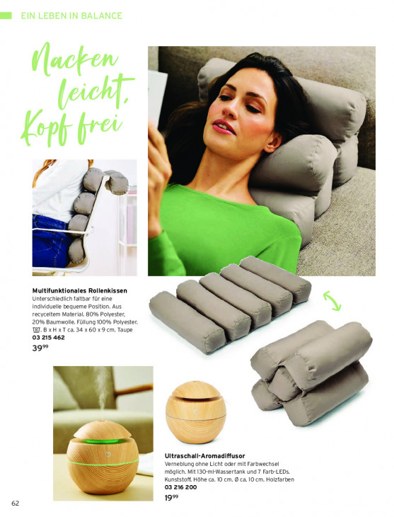 Bitte beachten Sie, dass dieser Text automatisch generiert wird und möglicherweise Fehler enthältnr Re ni / & R SS Se Re Sel N ie SI Se Rn 5 . À ER e À 2 3 SER + = Ee 9 © De “4 AN Di 2 LT ù de. = 5 2 mmm N ie 2% 2 Multifunktionales Rollenkissen Unterschiedlich faltbar für eine individuelle bequeme Position. Aus + recyceltem Material. 80% Polyester, 20% Baumwolle. Füllung 100% Polyester. WJ. B xH XT ca. 34 x 60 x 9 cm. Taupe in, 03 215 462 a 39 u M- — BES 4 N \\ m (où Uitraschall-Aromadiffusor | N À Verneblung ohne Licht oder mit Farbwechsel möglich. Mit 130-mi-Wassertank und 7 Farb-LEDs. Kunststoff. Höhe ca. 10 cm. @ ca. 10 cm. Holzfarben 03 216 200 19% 62