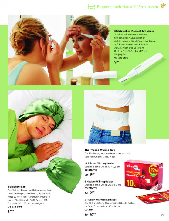 Bitte beachten Sie, dass dieser Text automatisch generiert wird und möglicherweise Fehler enthältElektrischer Kosmetikrasierer 2 Seiten mit unterschiedlichen Klingenlängen. Zusätzlicher ‚Aufsteckkamm fürs Kürzen der Haare auf 3 oder 6 mm. Inkl. Batterie. ABS. Klingen aus Edelstahl. BXHXTca.135 x13x17 cm. Weiß-grün 03 215 286 9° | wm ) Kk Li / | En ss ei BEN 22 IH er EN X SS; Thermopad Wärme-Set Zur Linderung von Muskelschmerzen und Verspannungen. Vlies. Weiß. Le 10 Rücken-Wärmepflaster Selbstklebend. Je ca. 13 x 9,5 cm LTD 03 216 18 12h QE een Kara set 99 COTE 13 LD 6 Nacken-Wärmepflaster Selbstklebend. Je ca. 29,5 x 9 cm 0, Seidenturban 03 216 119 Schützt die Haare vor Reibung und kann dä dazu beitragen, Haarbruch, Spliss und set 99 = I Frizz zu verhindern. Perfekte Passform = SS = durch Elastikband. 100% Seide. @. 3 Rücken-Wärmeumschläge B xH ca. 30 x 23 cm. Dunkelgrün Ca. 27,6 x 14,2 cm. Stretchgürtel (beide Seiten) ca. 31 x10 cm und ca. 37 x 10 cm 03 215 954 03 216 17 177° set 12° 79