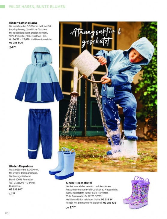 Bitte beachten Sie, dass dieser Text automatisch generiert wird und möglicherweise Fehler enthältKinder-Softshelljacke Wassersäule bis 5.000 mm. Mit evoPel- Imprägnierung. 2 seitliche Taschen. Mit reflektierendem Designelement. 90% Polyester, 10% Elasthan. WJ. in Kung fi Gr. 86/92 - 122/128. Hellblau-dunkelblau Pr 03 215 506 u CF 34® = "à = { r | d à | Le Ei 1777 En FP LL A we \| el N 3 N Si ij 5 Fe BI if) Li W il N MN EN ij en — u ee pen Fe 2 = Zi u“ Br > Fr IE un Yo # = nen ree x. Kinder-Regenhose = Wassersäule bis 5.000 mm. Mit evoPel-Imprägnierung. Weitenregulierbarer ses, Bund. 100% Polyester. wl. Gr. 86/92 - 134/140. Kinder-Regenstiefel = = Dunkelblau Henkel zum einfachen An- und Ausziehen. RL, raf de 03 215 947 Rutschhemmende Profil-Laufsohle. Wasserdicht. es a 100% Kunststoff. Futter 65% Polyester, 12% 4 ar 35% Baumwolle. Gr. 22/23-32/33. + Hellblau mit dunkelblauer Sohle 03 215 141 5 > À = E Flieder mit Blümchen-Alloverprint 03 215 138 Ee Je 17°? 90