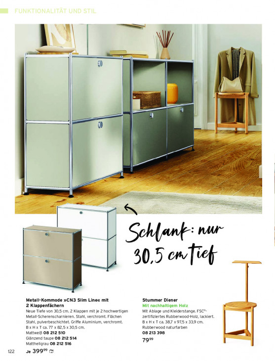 Bitte beachten Sie, dass dieser Text automatisch generiert wird und möglicherweise Fehler enthält% | amen 9 is | ns 50 Sonic Metall-Kommode »CN3 Slim Line« mit Stummer Diener 2 Klappenfächern Mit nachhaltigem Holz Neue Tiefe von 30,5 cm. 2 Klappen mit je 2 hochwertigen Mit Ablage und Kleiderstange. FSC*- Metall-Scherenscharnieren. Stahl, verchromt. Flächen zertifiziertes Rubberwood-Holz, lackiert. Stahl, pulverbeschichtet. Griffe Aluminium, verchromt. BXHXT ca. 387 x97,5 x 339 cm. BxHxT ca. 77 x 82,5 x 30,5 cm. Rubberwood naturfarben Mattweiß 08 212 510 08 213 398 Glänzend taupe 08 212 514 79% Matthellgrau 08 212 516 122 Je 3999 ©