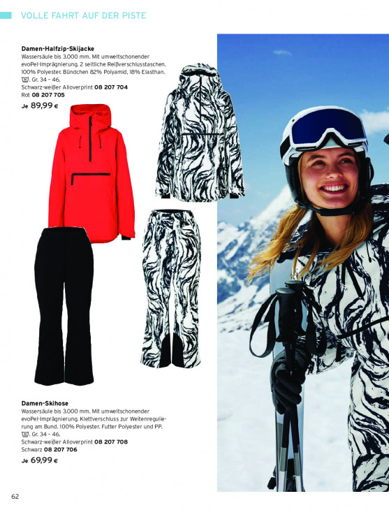 Bitte beachten Sie, dass dieser Text automatisch generiert wird und möglicherweise Fehler enthältDamen-Halfzip-Skijacke Wassersäule bis 3.000 mm. Mit umweltschonender evoPel-Imprägnierung. 2 seitliche Reißverschlusstaschen. Den, 100% Polyester. Bündchen 82% Polyamid, 18% Elasthan. Z 3. 6.34 - 46. Schwarz-weißer Alloverprint 08 207 704 Rot 08 207 705 KR {it RN Si « Je 89,99€ N EN A FA I EN N D N ) À ok dl ij zi a À 12 1 U HS 7 4 AN A S RN &/ k K ve Ba NI « 4 Jk 4 \ DE, Ki | { Ki \ à £ ij = ú \ N l 73 p Damen-Skihose Wassersäule bis 3.000 mm. Mit umweltschonender | evoPel-Imprägnierung. Klettverschluss zur Weitenregulie- rung am Bund. 100% Polyester. Futter Polyester und PP. W. Gr. 34- 46, Schwarz-weißer Alloverprint 08 207 708 Schwarz 08 207 706 Je 69,99 € 62