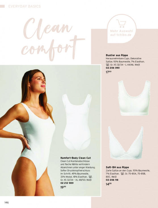Bitte beachten Sie, dass dieser Text automatisch generiert wird und möglicherweise Fehler enthältBustier aus Rippe Herausnehmbare Cups. Dekorative Spitze. 93% Baumwolle, 7% Elasthan. WI. Gr. XS 32/34 - L 44/46. Weiß 02 206 090 1799 Komfort-Body Clean Cut Clean Cut-Kantenabschiüsse und flache Nähte verhindern ‚Abzeichnen unter enger Kleidung. Soft-BH aus Rippe Softer Druckknopfverschiuss Zarte Spitze an den Cups. 93% Baumwolle, im Schritt. 49% Baumwolle, 7% Elasthan. @J. Gr. 75-804, 75-858, 33% Modal, 18% Elasthan. I]. 80C. Weiß Gr. XS 32/34 - XL 48/50. Weiß 02 206 118 02 212 989 14% 1 146