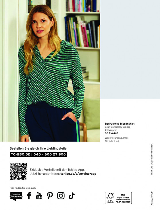 Bitte beachten Sie, dass dieser Text automatisch generiert wird und möglicherweise Fehler enthältW | \ Ÿ BG DR an 5 5 N A N) up Où es Ri RR VOR fi % rn BR f Br CAR CARS a ne! ijk Ri X ik an # rm fe rn en "1 Ra 6 ff JAA Bedrucktes Blusenshirt Grün-Dunkelblau-weifer Alloverprint 02 216 467 Weitere Farben & Infos " auf S.10 & 23. Bestellen Sie gleich Ihre Lieblingsteile: orbehalten. =] Exklusive Vorteile mit der Tchibo App. Im und Druckfehl & “és Jetzt herunterladen: tchibo.de/c/service-app Bl Hier finden Sie uns auch: You MIX apler | Fördert Ef P © d 3 FSC ge Walnuzung mn FSC® 0022597 KA02/26/TCD